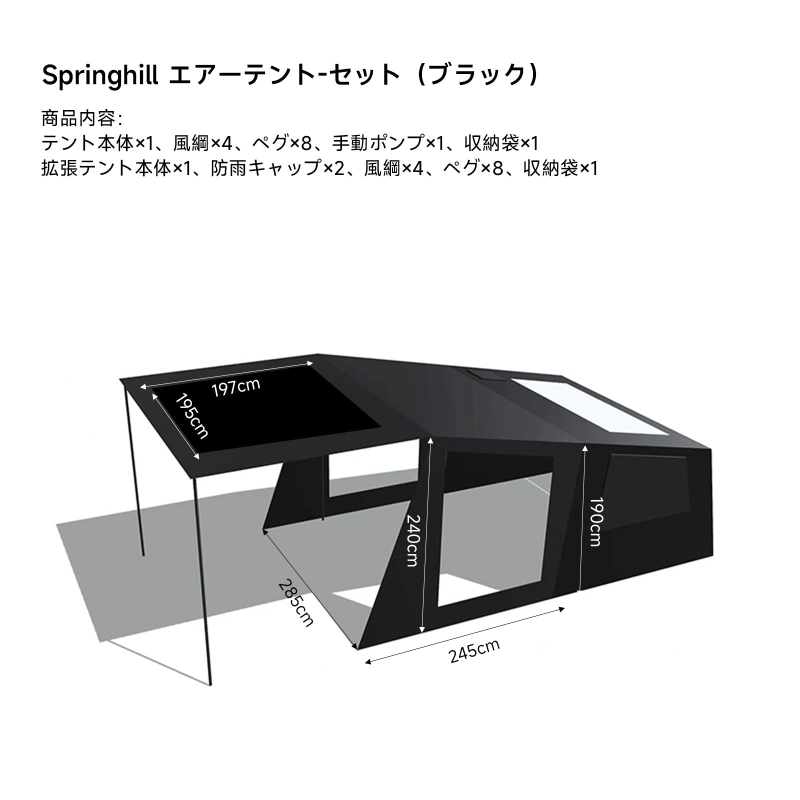 A1:このインフレータブルテントは、付属の高圧ポンプを使用して、わずか120秒で設営が完了します。他の工具は不要で、開封後すぐに使用可能です。