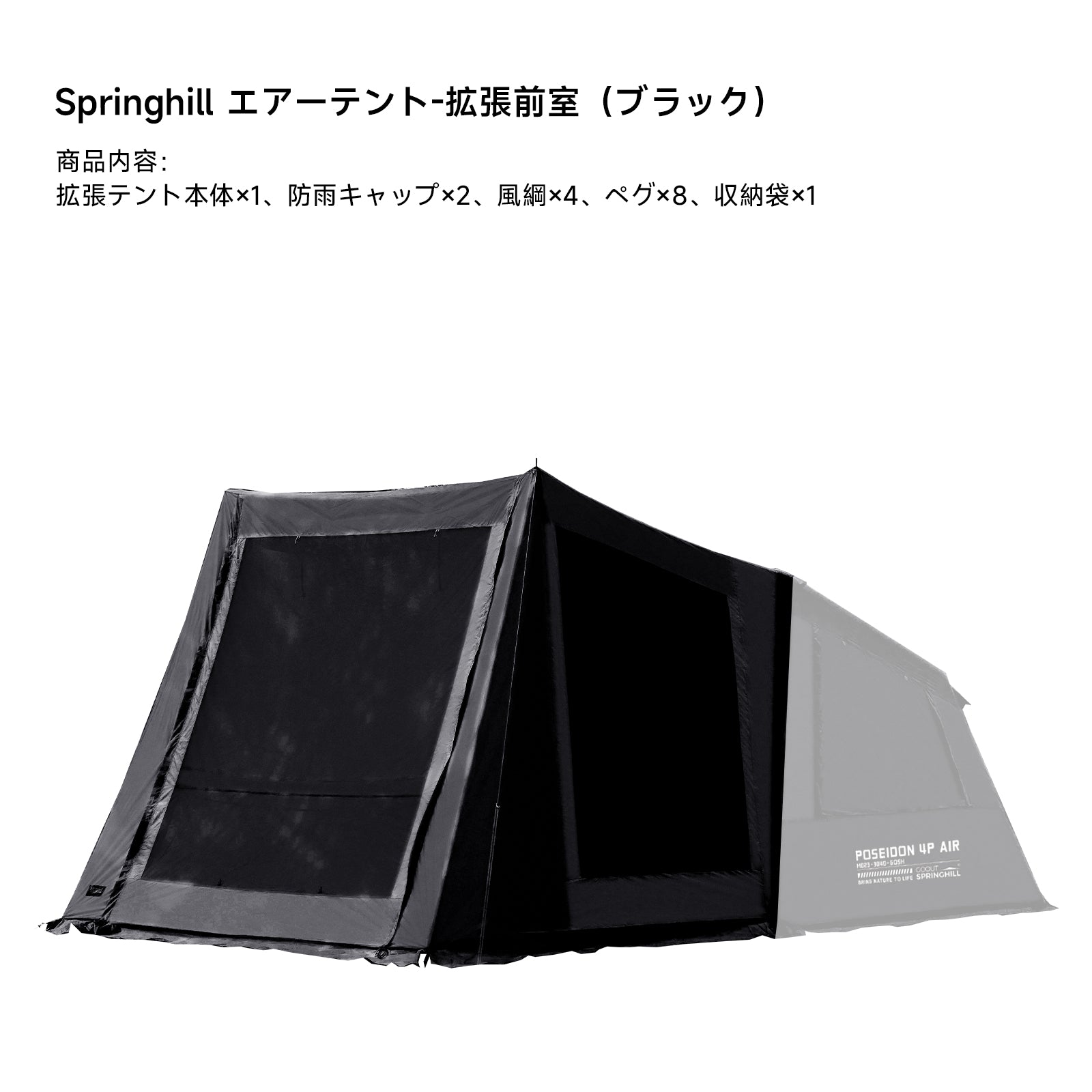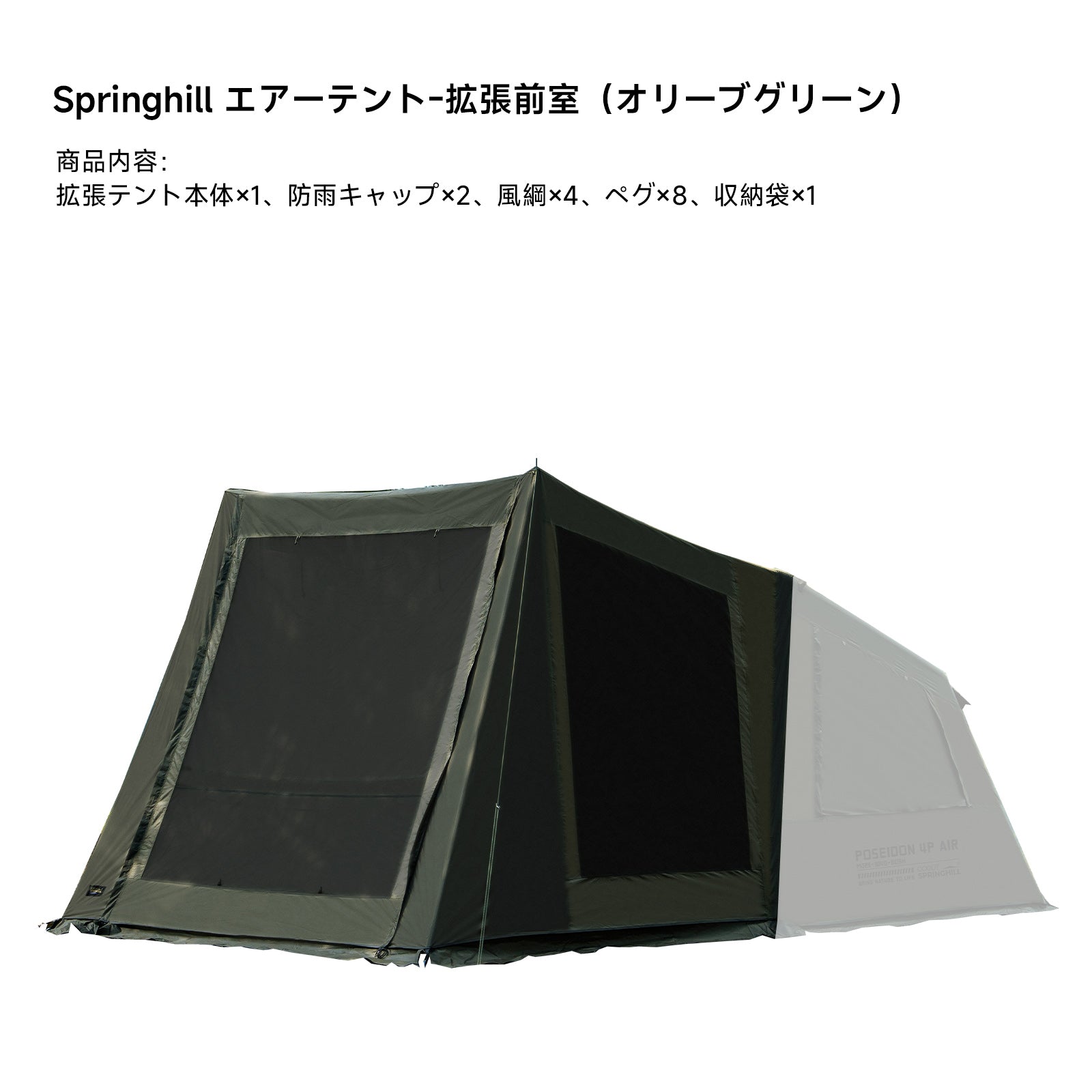 オプションの拡張前室で、防水ジッパーでメインテントと無縫製で接続。拡張テント接続部には縁取り加工を採用し、接合部からの雨の侵入を防ぐ構造になっています。